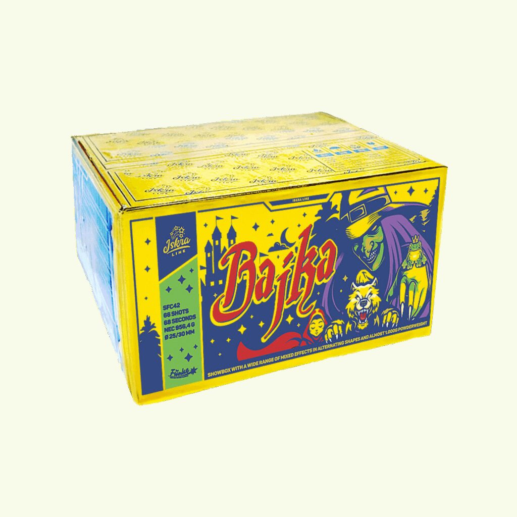 n nShowbox met een breed scala aan gemengde effecten in afwisselende vormen en bijna 1.000g poedergewicht. n n Iskra Line Bajka 66 shots Goedkoop vuurwerk kopen bij Vuurwerkwinkel Castricum