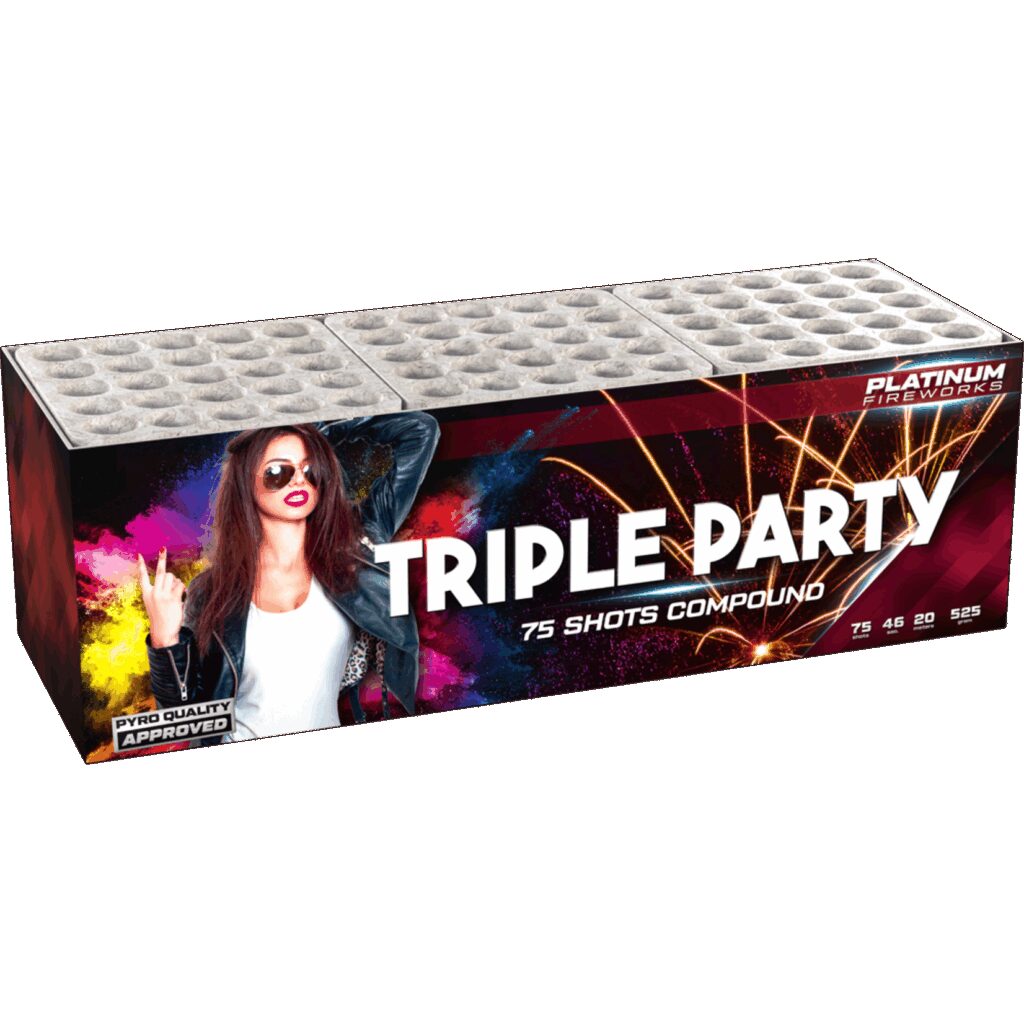 Lesli Vuurwerk Triple Party 75 shots Goedkoop vuurwerk kopen bij Vuurwerkwinkel Castricum