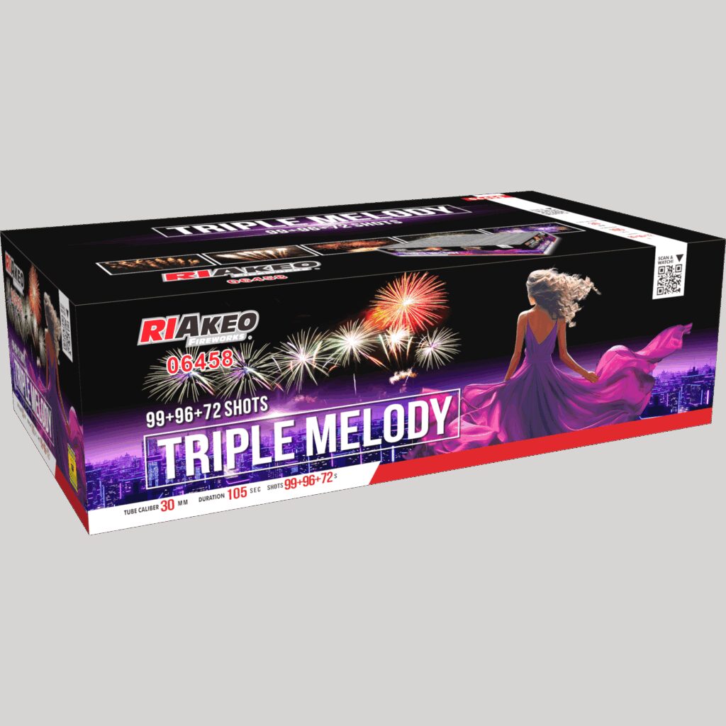 n nSprakeloos! Bekijk het filmpje van Triple Melody, het is namelijk 276 shots genieten! Artikelnummer: 06458. n n Riakeo Fireworks Triple Melody 267 shots Goedkoop vuurwerk kopen bij Vuurwerkwinkel Castricum